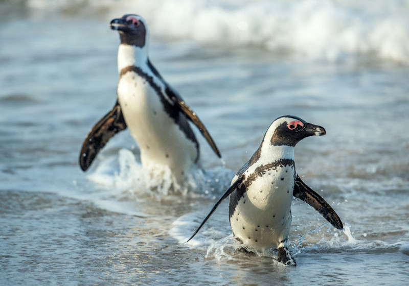 A espécie é classificada na Lista Vermelha como em perigo e sua população está em queda. Trata-se da única espécie de pinguim que ocorre na África. Possui cerca de 45 cm de altura; pesa, em média, 3,1 kg e é encontrada em grandes colônias.