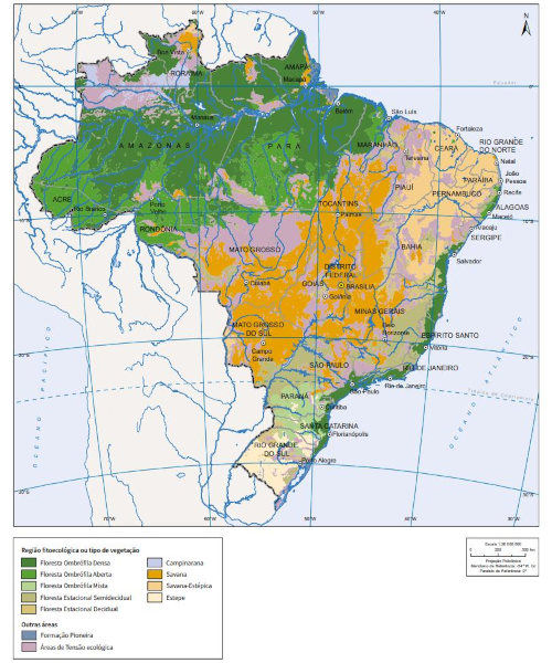 O Brasil apresenta quatro diferentes tipos de vegetação, que descrevemos a seguir.