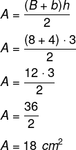 Qual é a área do trapézio que possui base maior igual a 8 cm, base menor igual a 4 cm e 3 cm de altura?