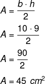 Qual é a área de um triângulo cuja base mede 10 cm e altura é de 9 cm?