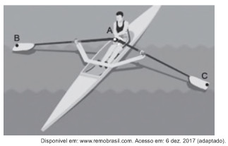 (Enem) O remo de assento deslizante é um esporte que faz uso de um barco e dois remos do mesmo tamanho. A figura mostra uma das posições de uma técnica chamada afastamento.
