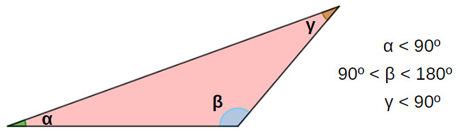 Um triângulo é um triângulo obtusângulo se possui um ângulo obtuso, ou seja, com medida entre 90° e 180°.