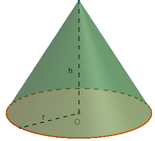 Cone é uma figura geométrica formada pela união de uma região circular com um ponto que não pertence a esse plano. Podemos vê-lo também como sólido de revolução, ou seja, girando-se um triângulo retângulo em torno de seus catetos, forma-se um cone no espaço.