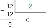 O quociente encontrado agora foi o número 12, então devemos dividi-lo novamente pelo primeiro número primo cuja divisão seja exata, ou seja, por 2.