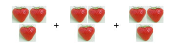 3 + 3 + 3 + 3 = 12 ou 3 x 4 = 12