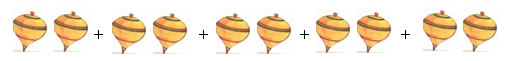 2 + 2 + 2 + 2 + 2 = 10 ou 5 x 2 = 10